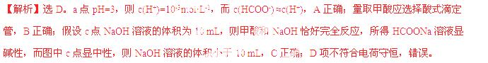 已知在25 ℃条件下向10.00 mL 0.1 mol·L-1 HCOOH溶液中逐滴加入0.1 mol·L-1 NaOH溶液,其pH变化曲线如图所示(忽略温度变化)。
