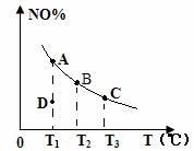 C.T1时,当反应处于D点,则该反应的逆反应速