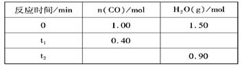 CO2(g)+H2(g),反应过程中测定的部分数据见下表(表中t2> t1):![]()