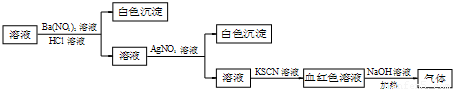 | A.原溶液中一定含有SO42-离子 | B.原溶液中一定含有NH4+离子 |