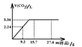 (12分)某学生用NaHCO3 和 KHCO3 组成的某混合物进行实验,现称取不同质量的混合物样品溶于水后,分别滴入相同浓度的盐酸50ml,产生CO2气体的体积(标准状况)如图所示。