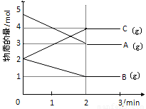 ⑤2分钟后A、B、C各物质的量不再随时间的变化而变化,说明在这个条件下,反应已达到了 ____ 状态。