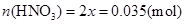 烟气需用硝酸的物质的量(保留3位小数)。