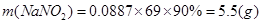 烟气达到最高吸收率90%时,吸收后生成NaNO2的质量(假设上述吸收反应中,反应①比反应②迅速。计算结果保留1位小数)。