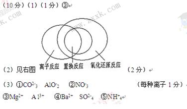 (2)可用图示的方法表示不同反应类型之间的关系。如分解反应和氧化还原反应可表示为下图。请在下面的方框中画出离子反应、置换反应和氧化还原反应三者之间的关系。