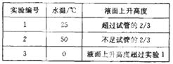 (3)将3支充满红棕色气体的小试管分倒置在盛有常温水、热水和冰水的3只烧杯中,发现液面上升的高度明显不一致。结果如下表所示(忽略温度对气体体积的影响):