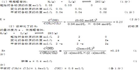 (2)在上述温度下,陔容器中若通入H2和I2各4.0mol的气态混合物,求达到化学平衡状态时各物质的浓度。