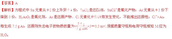 ①氧化剂是H3AsO3 ②还原性:Cl->As ③每生成7.5 g As,还原剂失去的电子为0.3 mol