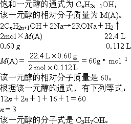0.60 g某饱和一元醇A,与足量的金属钠反应,生成氢气112 mL(标准状况),该一元醇的分子式是 | |