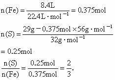 实验室把29g铁和硫的混合物在密闭容器中加热反应后,冷却室温再跟足量的稀盐酸反应,放出的气体在标准状况下为8.4L,求混合物中硫和铁的物质的量之比.