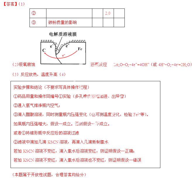 | 编号 | 实验目的 | 碳粉/g | 铁粉/g | 醋酸/% |