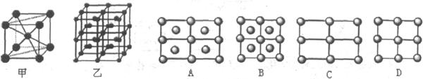 (6)Fe的一种晶体如甲、乙所示,若按甲虚线方向切乙得到的A-D图中正确的是 .铁原子的配位数是 ,假设铁原子的半径是r cm,该晶体的密度是p g/cm3,则铁的相对原子质量为 (设阿伏加德罗常数的值为NA)。