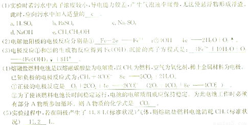 (5)实验过程中,若在阴极产生了44.8L(标准状况)气体,则熔融盐燃料电池消耗CH4(标准状况) L。