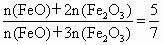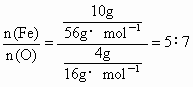 所以铁的氧化物中含氧4g,含铁10g,它们的原子个数比为: