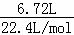 | 分析: | 标况下,气体摩尔体积相等,①6.72L CH4的物质的量= |