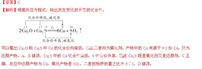 6Cu+SO2↑,对于该反应,下列说法正确的是 ( )