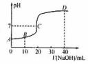 B.B点的溶液:c(CH3COO-)>(Na+)>c(H-)> c(OH-)