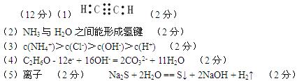 (3)将标准状况下的4.48 L CA3完全溶解在含0.1mol HCl的水溶液中得1L溶液,所得溶液pH=9,其中离子浓度由大到小的顺序是 。