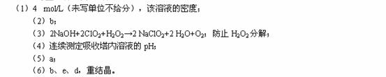 (5)吸收塔中为防止NaClO2被还原成NaCl,所用还原剂的还原性应适中。除H2O2外,还可以选择的还原剂是 (选填序号)。
