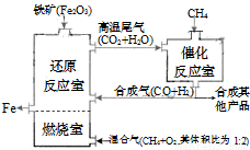 Êú¯ұÌú¹¤ÒÕÁ÷³ÌÈçͼ£¬Ê¹ÌìÈ»Æø²úÉú²¿·ÖÑõ»¯£¬²¢ÔÚÌØÊâµÄȼÉÕÆ÷ÖÐʹÑõÆøºÍÌìÈ»ÆøÈ¼ÉÕCH4(g)+2O2(g)=CO2(g)+2H2O(g)£¬´ß»¯·´Ó¦ÊÒ·¢ÉúµÄ·´Ó¦Îª£º