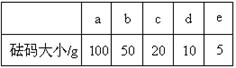 (2)用质量为13.1 g的空烧杯,需要称取烧碱样品20 g 。则放在托盘天平上称取时,最终选取所需的砝码为 (填附表中的字母),并在下图中选出能正确表示游码位置的选项 (填字母)。