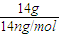 D、14g分子式为CnH2n的(n≥2)链烃物质的量==mol,依据链烃的通式CnH2n和饱和烷烃CnH2n+2分析,CnH2n的(n≥2)链烃分子中含有一个不饱和键,即含有1个碳碳双键,所以mol的链烃CnH2n分子中含有C=C的数目一定为,故D正确;