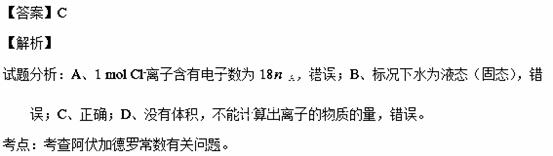 A.1 mol Cl-离子中含有的电子数为8A