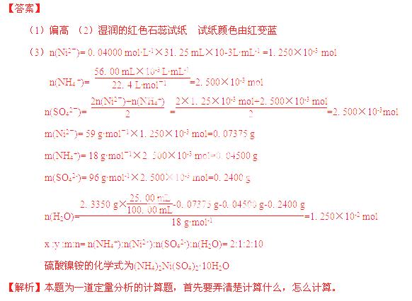 (3)通过计算确定银硫酸镍铵的化学式(写出计算过程)。