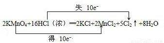【答案】分析:(1)反应中HCl→Cl2,氯元素化合价由-1价升高为0价,共升高2价,KMnO4→MnCl2,Mn元素化合价由+7价降低为+2价,共降低5价,化合价升降最小公倍数为10,故KMnO4系数为2,故Cl2系数为5,再根据元素守恒确定其它物质的系数,配平方程式,根据“双线桥法”标明电子转移的方向和数目;