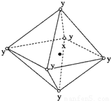 在某晶体中,与某一个微粒x距离最近且等距离的另一个微粒y所围成的空间构型为正八面体形(如图)。该晶体不是