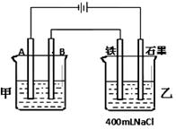 (2)若甲电解池阴极增重1.28g,乙电解池中剩余溶液仍为400mL,则电解后所得溶液中新生成溶质的物质的量浓度为 mol/L,溶液的pH等于 。
