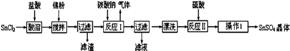 硫酸亚锡(SnSO4)是一种重要的硫酸盐,主要用于电镀工业的镀锡、铝合金表面的氧化着色、印染工业的媒染剂、双氧水去除剂等。某研究小组设计SnSO4制备路线如下:![]()