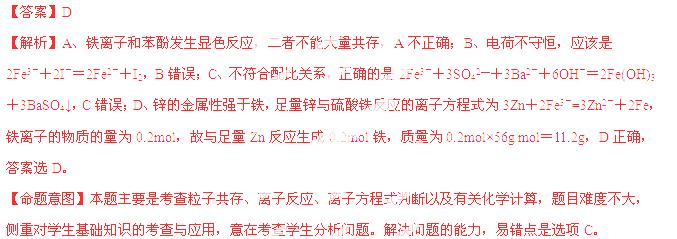 D.1 L0.1 mol·L—1该溶液和足量的Zn充分反应,生成11.2 g Fe