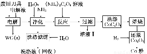 废旧硬质合金刀具中含碳化钨(WC)、金属钴(Co)及少量杂质铁,利用电解法可回收WC和Co。工艺流程简图如下:![]()