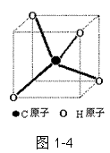 CH4分子在空间呈四面体形状,1个C原子与4个H原子各共用一对电子对形成4条共价键,如图1-3所示为一个正方体,已画出1个C原子(在正方体中心)、1个H原子(在正方体顶点)和1条共价键(实线表示),请画出另3个H原子的合适位置和3条共价键,任意两条共价键夹角的余弦值为 ![]()