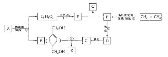 ,从A出发发生图示中的一系列反应,其中B和C按1:2反应生成Z,F和E按1:2反应生成W,W和Z互为同分异构体。