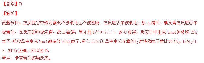 .碘元素在反应①中被还原,在反应②中被氧化