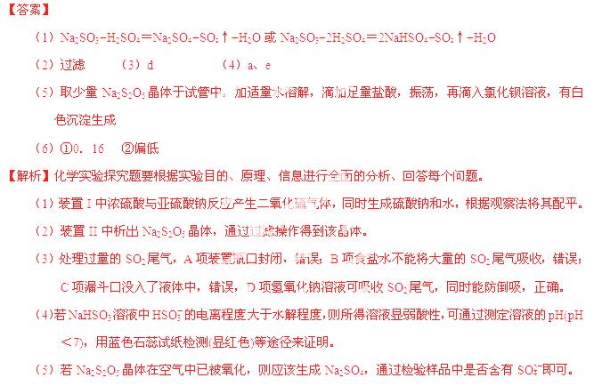 5¡£×°ÖÃIIÖÐÓÐNa2S2O5¾§ÌåÎö³ö£¬·¢ÉúµÄ·´Ó¦Îª£ºNa2SO3£«SO2£½Na2S2O5