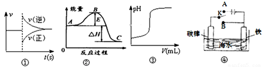 | A、 如图表示化学反应H2(g)+Cl2(g)=2HCl(g)的能量变化,则该反应的反应热△H=+183kJ/mol | B、 如图表示其它条件不变时,反应4A(g)+3B(g)?2C(g)+6D在不同压强下B%(B的体积百分含量)随时间的变化,则D一定是气体 | C、 如图表示体积和c(H+)均相同的HCl和CH3COOH两种溶液中,分别加入足量的锌,产生H2的体积随时间的变化,则a表示CH3COOH溶液 | D、 如图表示中曲线表示反应2SO2(g)+O2(g)?2SO3(g);△H<0 正、逆反应的平衡常数K随温度的变化 |