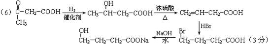 (6)4-羟基丁酸钠(HOCH2CH2CH2COONa)是一种麻醉药。现以上述合成路线中的C物质为原料制取4-羟基丁酸钠,请写出其合成路线流程图(合成过程中无机试剂任选,并注明反应条件)。