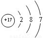 C、氯原子质子数为17,核外电子数为17,33个电子层,各层电子数分别为2、8、7;