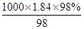 可知,98%的硫酸(密度为1.84 g·cm-3)的浓度=