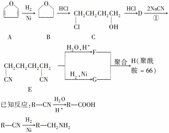 聚酰胺-66常用于生产帐蓬、渔网、降落伞及弹力丝袜等织物,可利用下列路线合成: