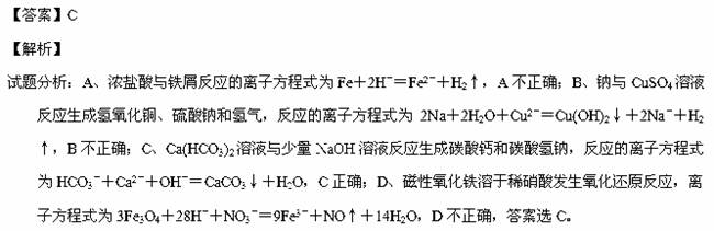 C.Ca(HCO3)2溶液与少量NaOH溶液反应:HCO3-+Ca2++OH-=CaCO3↓+H2O