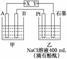 如图为相互串联的甲乙两个电解池,X、Y为直流电源的两个电极。电解过程中,发现石墨电极附近先变红。请回答: