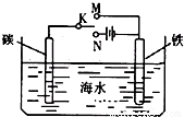 【答案】分析:开关K置于N处,该装置是电解池,碳棒作阳极,铁棒作阴极,阳极上失电子发生氧化反应,阴极上得电子发生还原反应;开关K置于M处,该装置是原电池,铁电极上失电子而作负极,碳棒作正极,电子从负极沿导线流向正极.