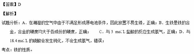 C.与3 mol/L盐酸的反应生成氢气 D.与18.4 mol/L的硫酸反应生成氢气