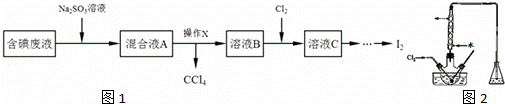 实验室从含碘废液(除H2O外,还含有CCl4、I2、I﹣)中回收碘,其实验过程如图1: