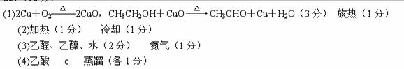 (1)实验过程中铜网出现红色和黑色交替的现象,请写出相应的化学反应方程式________________________________。在不断鼓入空气的情况下,熄灭酒精灯,反应仍能继续进行,说明该乙醇氧化反应是________反应(填“吸热”或“放热”)。