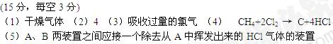 (15分)实验室中利用下列装置制取氯气并进行甲烷与氯气的取代反应,同时检验其产物中有HCl生成. 试回答下列问题![]()